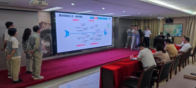 作為公司精益戰(zhàn)略的核心載體,合肥高科以“讓精益流行起來(lái)”為行動(dòng)綱領(lǐng),聚焦智能化裝備升級(jí)與生產(chǎn)流程再造,從設(shè)計(jì)端到生產(chǎn)端實(shí)現(xiàn)全鏈路協(xié)同優(yōu)化。通過(guò)標(biāo)準(zhǔn)化工藝設(shè)計(jì)及數(shù)字化管理工具的應(yīng)用,改善成率逐步提升,設(shè)備綜合效率也大幅度高于以往水平。此外,項(xiàng)目團(tuán)隊(duì)通過(guò)魚(yú)骨圖等各種分析法,對(duì)設(shè)備運(yùn)行狀態(tài)、工藝形式及安全隱患進(jìn)行全面診斷,形成系統(tǒng)性改進(jìn)方案。例如,針對(duì)設(shè)備安全不足、設(shè)備使用率低下,故障率持高不下、人員配備不飽和等問(wèn)題,團(tuán)隊(duì)增設(shè)人員監(jiān)督、設(shè)備改造等實(shí)時(shí)監(jiān)控、優(yōu)化維護(hù)流程,為后續(xù)產(chǎn)能釋放奠定堅(jiān)實(shí)基礎(chǔ)。