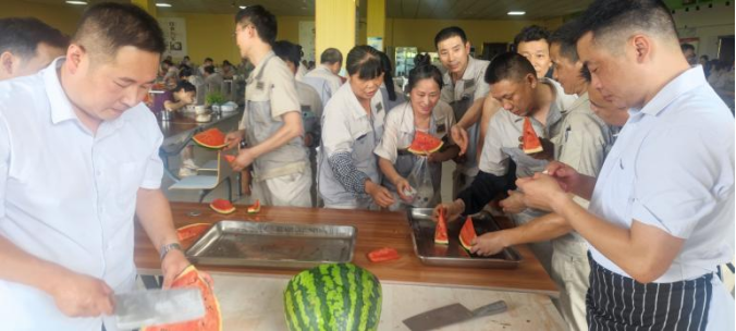 在發(fā)放現(xiàn)場,公司相關負責人親自將防暑物資一一送到員工手中,叮囑大家在高溫天氣下一定要注意防暑降溫,合理安排工作時間,確保自身安全與健康。同時,強調各部門負責人要時刻關注員工的身體狀況,在保障工作正常開展的前提下,靈活調整工作安排,避免員工長時間在高溫環(huán)境下作業(yè)。在食堂,公司定時定點的安排人員,合理有序的為員工發(fā)放切好的西瓜。