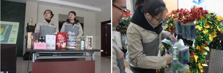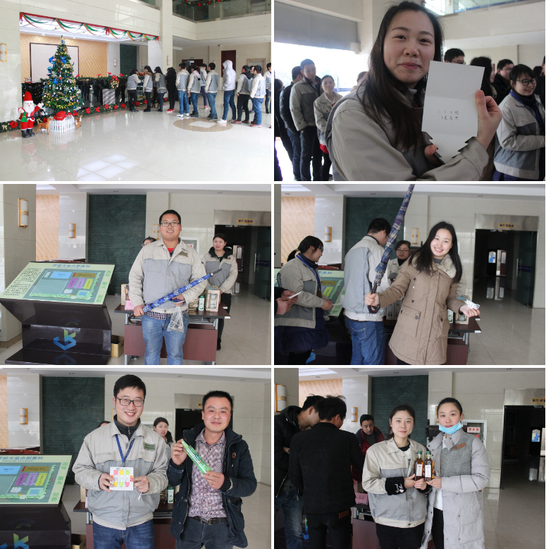 整個活動現場全程的為大家播放有關的圣誕歌曲,烘托了現在氣氛,最熱鬧、激動人心的是抽獎環節,每個獎品都寫在賀卡里,賀卡里有實物獎和新年祝福語!